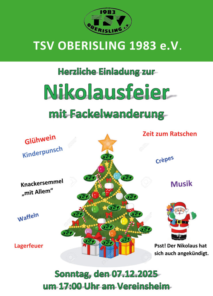 Die Ski-Abteilung des TSV Oberisling lädt herzlich zur diesjährigen Nikolausfeier mit Fackelwanderung ein!